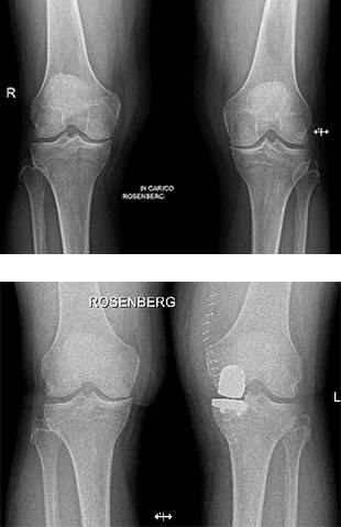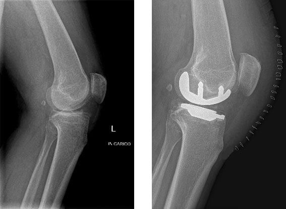 Paziente maschio di 65 anni, affetto da gonartrosi mediale sinistra, trattata con protesi monocompartimentale mediale di ginocchio con tecnica mini invasiva.